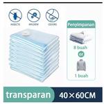 Kantong vakum adalah kantong plastik fleksibel yang udaranya dapat dikeluarkan dengan menggunakan penyedot debu. Barang Anda tidak akan cepat rusak karena kantong vakum dirancang tahan air dan kedap udara. Dengan menggunakan produk ini tentunya Anda bisa lebih menghemat ruang