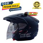 STANDARISASI : SNI 1811-2007 & DOT KACA : double visor, Visornya lebih tebal 40 persen dibanding visor NHK Predator sebelumnya sehingga lebih kuat. Terdapat lekukan tambahan di bagian depannya untuk memudahkan para bikers pada saat menaikkan dan menurunkan visor. visor helm ini juga memiliki aerodinamic system yang responsif dan sesuai dengan standar helm berteknologi F1. Terbuat dari material polycarbonate yang sudah optical ( tetap focus , tidak silau ), anti uv ( anti utra violet ), tidak mudah pecah patah saat jatuh. INTERIOR : Bagian dalam helm terdapat styrofoam dengan material polystyrene dengan fungsi menyerap getaran saat terjadi benturan, kecelakaan , melindungi resiko dari geger otak . Interior helm NHK yang berbahan halus yang dapat dilepas (know down) bongkar pasang supaya dapat di cuci agar helm anda selalu dalam kondisi bersih dan nyaman saat digunakan. TALI PENGIKAT : Jenis tali pengikat helm ini adalah Micrometric Buckle. Cara kerja system ini dengan menguunakan gerigi geriki sebagai penahannya. Untuk membukanya, tinggal menarik bagian yang menahan pangait dan menarik pengait. FITUR KEAMANAN : ANTI THEFT SYSTEM, Pada sisi sebelah kanan terdapat lubang yang disebut lubang anti maling yang bisa dibuka tutup. Untuk caranya kerjanya sangat sederhana yakni cukup dengan memasukkan kabel yang bentuknya lebih kurang seperti kabel untuk kunci sepeda. Kemudian kabel ini dikunci di motor sehingga helm jadi lebih aman ditinggal diparkiran. UKURAN : *Size M : Lingkar kepala : 57-58 cm *Size L :Lingkar kepala : 59 60 cm
