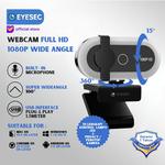 PREMIUM EYESEC Webcam 1080P Full HD dengan Lampu LED & Mic Kamera PC Laptop USB Plug and Play kamera Meeting kamera Live Streaming - HITAM