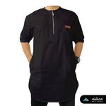 BAJU KOKO MUSLIM PRIA DEWASA KURTA MODEL ZIPPER LENGAN PENDEK TERBARU - Hitam, M
