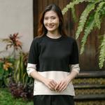 Beatrice Clothing Lindy Knit Blouse - Atasan Rajut Wanita Basic Two Tone - Black