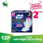 Aman, Nyenyak Sampai Pagi ! Dengan pelindung samping, CHARM Safe Night Gathers 35cm memberikan perlindungan anti bocor belakang, rasa aman dan nyaman untuk tidur semalaman. Nyenyak sampai pagi ! Fleksibel Butterfly Wing yang Lebar dan flexibel di bagian belakang, mencegah bocor saat kamu tidur. Meski berguling tetap pas di badan. Dilengkapi juga dengan Dinding Pelindung Samping yang dapat mencegah bocor samping. Zona Triple Proteksi Menyerap lalu mengunci cairan, mencegah pembalut bocor. Permukaan yang Lembut di Kulit Permukaan halus, menyentuh kulit dengan lembut. Kamu tetap nyaman tidur dimalam hari. *Baik digunakan dalam 3 tahun setelah masa produksi