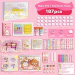Tatajoy Set Stiker Buku Handbook Cute Stickers Set Guka Set + DIY Cute Diary Set Buku Panduan DIY Cartoon Theme Label Stickers Journal Handbook DIY Decoration Stickers Notebook Book Materials - 187pcs