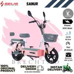 Merk : SELIS Type : SANUR Specifikasi : ≫ Kecepatan 25 km / jam ≫ Dinamo : 500 watt ≫ Baterai 48/12 ah ≫ Jarak tempuh 40km ≫ Garansi 5 tahun ≫ Speedometer digital ≫ Lampu Led Depan ≫ USB Port ≫ Dual Shock Breaker