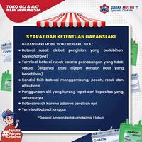 (Untuk Aki Basah pengisian di toko = bergaransi, pengisian sendiri = tidak bergaransi).