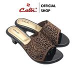 CALBI CRX 1942 Sandal High Sandal Heels Perempuan 6cm Slip-on Bling-Bling Pesta Mewah - Cokelat, 36