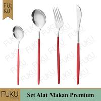 Set Alat Makan Korea Mewah Cutlery Premium Korea Sendok Garpu Pisau - Red Silver, sendok teh