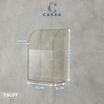 𝐃𝐄𝐓𝐀𝐈𝐋 𝐏𝐑𝐎𝐃𝐔𝐊: Spesifikasi: • Model Produk: Tempat Remot AC • Material: Akrilik / Acrylic • Warna: Bening / Clear • Ukuran: 3 Slot (6cm x 3cm x 9,5cm) • Tebal: 2mm