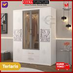 SHUMO Lemari Pakaian Besi 4 Pintu Extra Large Ayun Swing Minimalis Lampu LED | Lemari Baju Anti Jamur - MOTIF-D, DIRAKIT