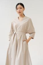 Made of crinkled cotton fabrics V-neckline with mid length sleeves Loose cut dress in midi length Belt included The colors you see on your screen may differ from the original color of the product due to the settings of your display screen and different lightings of the photo.