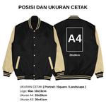 Jaket Baseball Varsity sablon custom satuan full warna. Harga sudah termasuk sablon