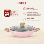 [COD] Cypruz Wajan Kuali Anti Lengket Wok Pan Non Stick Pink Ceramic Series Dengan Tutup Keramik Masak Kitchenware - 26cm