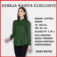 Kemeja Kameja wanita Kerja Polos Warna Hijau Botol 169