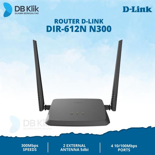 Router D-Link DLink DIR 612N 300Mbps Antarmuka Perangkat : - Nirkabel N 300 - 4 port LAN 10/100 - 10/100 port WAN (Internet) - 2 ANTENA EXTERNAL 5dbI STANDARISASI : - IEEE 802.11n / g / b - IEEE 802.3 - IEEE 802.3u - IEEE 802.3x SYSTEM OPERATION: Windows 8/7/Vista/XP SP3, or Mac OS X 10.4 or higher Microsoft Internet Explorer 7, Firefox 12.0, Chrome 20.0,Safari 4.0, or other Java-enabled browser Network interface card Cable or DSL modem Subscription with an Internet Service Provider -Security : WPA amp; WPA2 (Wi-Fi Protected Access) Wi-Fi Protected Setup (WPS)