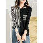 Atasan Kemeja Twoton Import Baju Salur Wanita Striped Korean Shirt New - Hitam