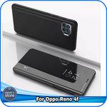 Casing Oppo Reno 4f Reno4 F Flip Case Luxury Mirror Stand Flipcase - Hitam