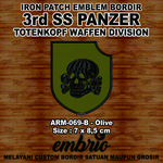 ARM-069 Patch 3rd SS Panzer Totenkopf Division Tropical Skull Schutzstaffel Waffen Germany Tengkorak Jerman - 7x8,5cm - Embrio Patch Embroidery Emblem Bordir Iron on Patches us army military tactical airsoft emblem velcro top gun patches us navy marine airforce