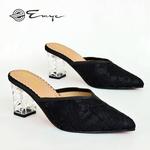 Emye - Sandal Heels Pesta Wanita Hak Kaca 7cm Brukat Denim Teracota Taro Iceblue Original Shoes - Hitam, 36