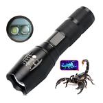 Spesifikasi Tipe LED Cree T6 dan UV 395 NM Lumens 1000 Lumens Tipe Baterai 1 x 18650 atau 3 x AAA ( Baterai Tidak Termasuk ) Material Aluminium Dimensi Senter: 35 x 35 x 130 mm Diameter LED: 20 mm