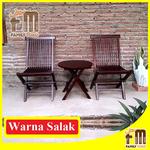Set Meja dan Kursi Teras Kayu Jati Minimalis Bisa Dilipat - Warna Salak, MJ Bundar Salur