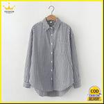 Fashion King Kemeja Wanita Casual Kantor Lengan Panjang Motif Garis-Garis Tersedia Sampai L Sampai XXXL