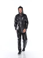 Jenis : setelan Bahan :Pvc Ukuran :all size Warna : hitam,silver Panjang baju :72 cm Lebar baju : 61 cm Panjang celana :97 cm Lebar celana : 36 cm