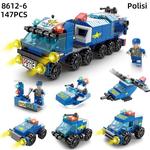6 In 1 Block Bricks Set Blok Polisi Bangunan Trooper Ekskavator Militer Truk Pemadam Kebakaran Allshop - Polisi