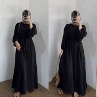 Abaya Hitam Premium Wanita Bahan Crinkle Modis Simple Elegan Nyaman Dipakai All Size Busui Friendly Wudhu Friendly Cocok untuk Harian dan Acara Resmi Gamis Muslim Lembut Dewasa Mewah Dress Basic Tangan Syari