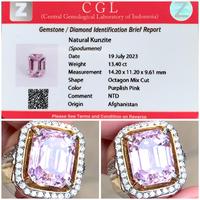 IS36U Perhiasan mewah, set kalung liontin kunzite ungu, anting cincin potongan sarang burung berlian penuh untuk wanita