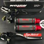 3in1 Paket master rem tabung tipe oval NoLan Original + Handgrip NoLan model HG55 original + Jalu stang cnc cocok untuk semua jenis motor Vario/Beat/Mio/NMAX/PCX/AEROX Dll/ Universal motorcycle paket murah - merah