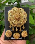 dikerjakan oleh tukang yang memiliki jiwa seni tinggi. dibuat dengan bahan kuningan anti karat, dilapis emas 24k membuat bros ini menyerupai emas asli.