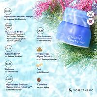 Hero Ingredients: Hydrolyzed Marine Collagen: Menjaga & memperkuat skin barrier Matrixyl 3000 (Palmitoyl Tripeptide-1 dan Palmitoyl Tetrapeptide-7): Memulihkan dan mempertahankan penampilan awet muda kulit dengan merangsang produksi kolagen Ceramide NP: Menjaga keseimbangan barrier kulit, memperlambat tanda penuaan, memperhalus & menjaga kulit terhidrasi Hydrolyzed Sodium Hyaluronate: Dapat menembus lapisan kulit dalam & melembabkan lebih optimal dari Hyaluronic Acid Hydrolyzed Algae Extract: Menghidrasi, melembutkan, dan melindungi kulit dari sinar UV Niacinamide:Mencerahkan, mengontrol produksi minyak berlebih, meredakan kemerahan & jerawat radang Oat: Melembabkan, membantu mencerahkan, & memperbaiki tekstur kulit Caffeine: Mengurangi kemerahan, garis halus, serta kerutan wajah