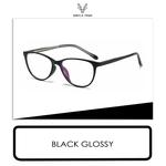Gray Pink Frame Kacamata Model Cat Eye Mata Kucing Bahan TR90 Lensa Plano Bisa Minus Fashion Wanita Trendy ZC06 - BLACK GLOSSY, FRAME SAJA