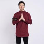 100% NEW BAJU KOKO LENGAN PANJANG KEMEJA KURTA PRIA COWOK MERAH MAROON POLOS HAPPY SHOPING - Merah Maroon, M