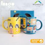Spesifikasi Produk : - Merk : Homeco - 1 Set isi 2pcs Mug & Gift Box - Warna Mug Biru & Kuning - Design : Lungo Japanese - Produk : Import - Bahan : Keramik - Berat : 800gr - Aman Untuk Makanan & Minuman - Ber Sertifikat SNI (Standar Nasional Indonesia) - Good Quality - 100% Original