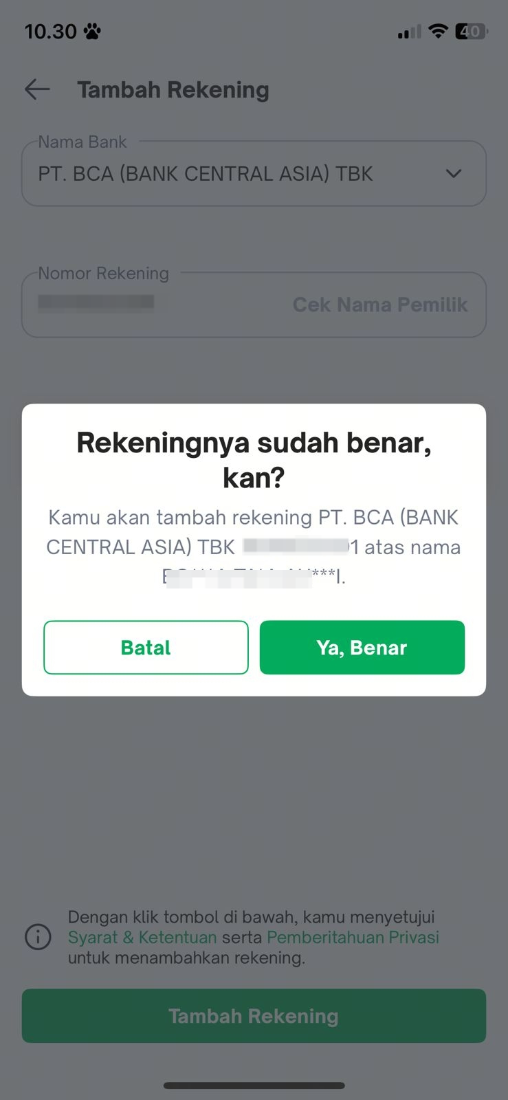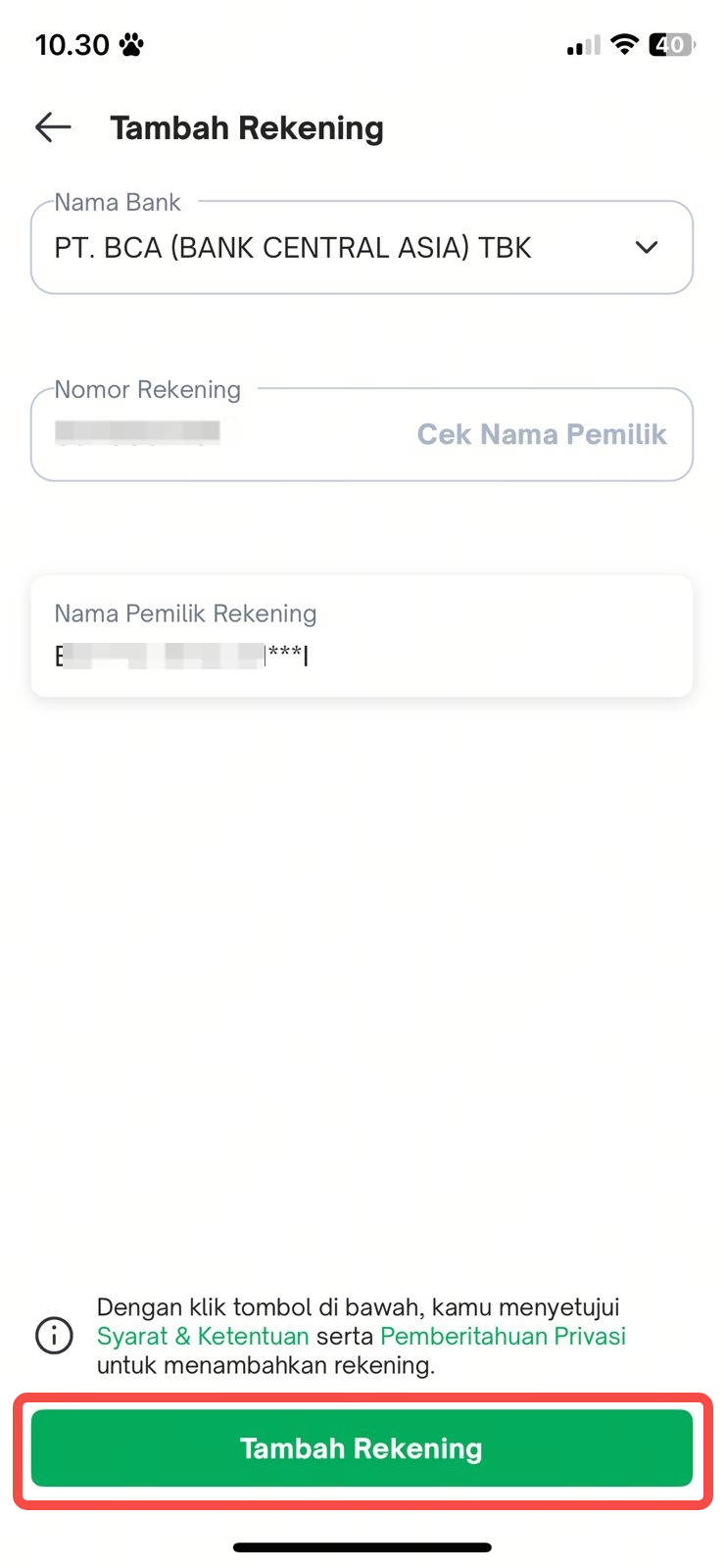 - "Nomor rekening diblokir" maka kamu dapat menggunakan rekening lain karena rekening yang ditambahkan tidak sesuai dengan Syarat dan Ketentuan.