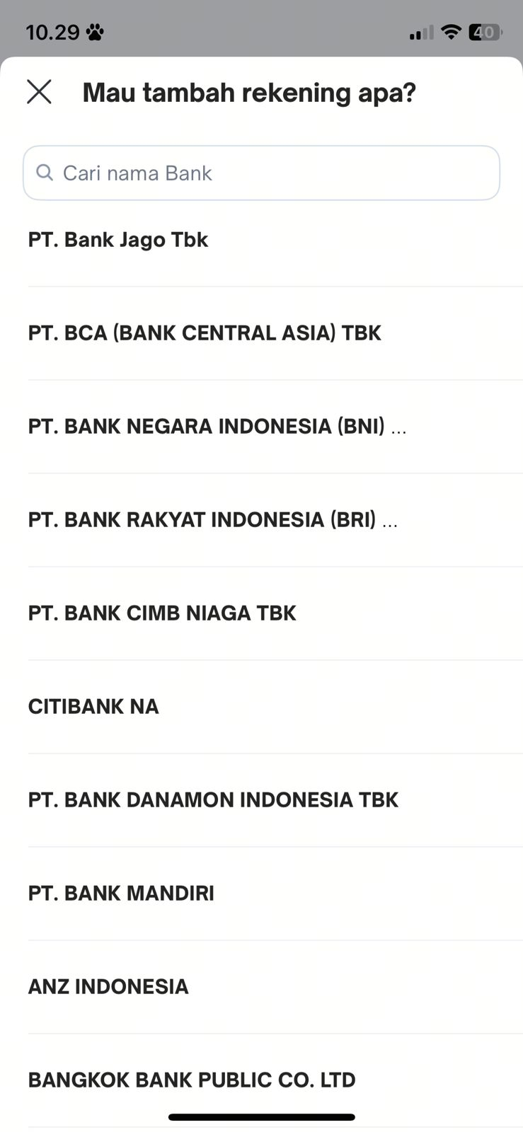 - Pilih bank yang ingin ditambahkan