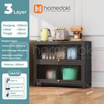 Homedoki Rak Piring Tertutup / Rak Dapur / Rak Serbaguna 5 Susun - 100CM-3L-HITAM