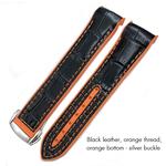 Aksesoris Jam Tangan 19mm 20mm 21mm 22mm Curved Nylon Rubber Watchband for Omega Seamaster 300 Speedmaster 8900 Planet Ocean Leather Silicone Strap - Black Leather O, Black Buckle