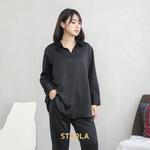 Starla One Set Wanita Atasan Celana Panjang Piyama Baju Tidur Satin Kanaya - Hitam