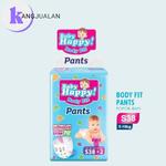 Popok Bayi Baby Happy Bodi Fit Pants Tipe Celana Yang Mempunya Beberapa Keunggulan Dirancang praktis untuk dikenakan pada bayi yang aktif bergerak. Terbuat dari bahan yang lembut dengan permukaan popok yang lebih stabil dan kepadatan yang terjaga sehingga daya serap lebih banyak, cepat kering dan merata. Popok ini dirancang berdaya serap tinggi dengan Super Absorbent Polymer yang mampu menyerap cairan dengan cepat sehingga menjaga kulit bayi tetap kering. Desain bagian belakang bersirkulasi menjadikan popok tidak panas sehingga kulit bayi tidak lembab dan bebas ruam. Terdapat pula indikator pipis berupa gambar gajah yang membantu ibu mengetahui kapan harus mengganti popok. Istimewanya, karet lingkar pinggang popok celana ini menggunakan Overlap Technology yang menjadikan bagian pinggang yang bersentuhan dengan kulit bayi selalu nyaman dan bebas iritasi. Karet pinggangnya lebih tinggi dan fleksibel menjadikan pinggang bayi lebih nyaman.