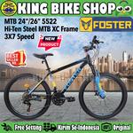Sepeda Gunung MTB FOSTER 5522 Ukuran 24 26 Inch Dewasa Remaja Rem Cakram 21 Speed - Black Blue, 26