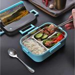 Kiosmee Kotak Makan Anti Tumpah Stainless Steel LunchBox 3 Grid 1300ml - Biru