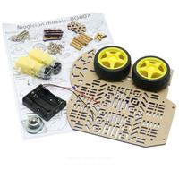 Chassis robot ini buatan dari Arexx Dagu Robot, terdiri dari 2 base plaste terbuat dari acrylic, tersedia lobang/ pin hole adjustable, yang dapat menyesuaikan untuk peletakkan modul seperti sensor, mikrokontroler, batere, driver motor, motor/ dinamo (servo), spacer, baut dan mur, dll. Kit termasuk dengan 2 buah plastik dc motor gearbox, roda, roller (roda depan), dan AAx3 housing batere. Ukuran keseluruhan setelah dirakit =175 x 125 x 75mm Ukuran roda : 65mm Terdapat disc encoder pada dc gearmotor untuk penggunaan pembacaan putaran/ posisi motor robot Spesifikasi dc gearmotor : Tegangan maksimal DC motor = 6 Volt DC No Load Speed: 9010rpm No Load Current:190mA(max.250mA) Torque: 800gf.cm Stall Current: ~1A
