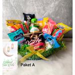 PAKET A terdiri dari : 14 barang - 1 keranjang /piring plastik - 1 botol Miyak Goreng 200 ml - 1 Kopi Kapal api special mix 24gr - 1 Gula Putih 35 gr - 1 Teh celup sosro (isi 10) - 2 pcs royco - 1 Kecap 60 ml - 1 Garuda kacang atom -2 indomie mie instan - 1 bihunku seduh - 1 snack oishi pillow - 1 arden - 1 tango snack - Kartu ucapan / amplop Selamat Hari Raya Idul Fitri