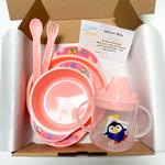 "Little Star Set 4 -4 Feeding Travel Set" a. 1 Piring makan bayi b. 1 Mangkok makan bayi c. 1 Botol minum bayi d. 1 Pasang sendok garpu bayi e. Free box f. Free custom kartu ucapan g. Free lapis bubble wrap