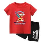 Setelan Anak Laki Lengan Pendek Baju Kaos Anak Laki Summer Adventures - Merah, 2