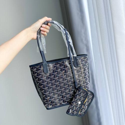 Original - Goyard Anjou Mini Navy Leather Tote Bag