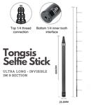 Tongsis Selfie Stick Ultra Long Carbon Fiber Invisible for Insta360 GoPro 3 Meter - 3M Black Silver