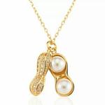 Kalung TITANIUM Kacang Mutiara Elegan Perhiasan Anti Luntur&Anti Karat - Kuning